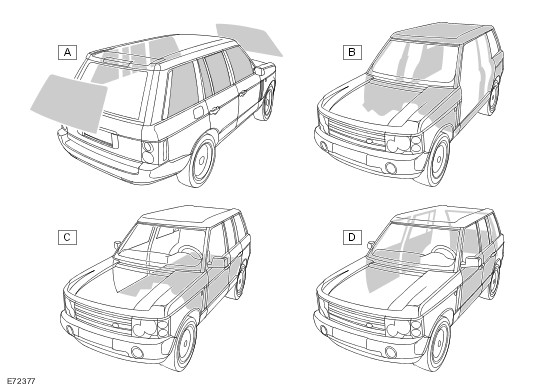 WARNING: The weight of the individual components fitted to the vehicle are far in excess of those fitted to the standard vehicle. As an example, the windscreen weighs approximately 100 Kg (220 lb) and the rear screen weighs approximately 56 kg (125 lb). Always make sure that you are aware of the weight of any component BEFORE attempting to remove it from the vehicle, and have suitable equipment available to assist you.