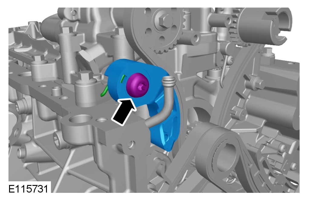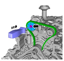 3 Install the lower timing chain making sure the colored chain links align correctly with the fuel rail high-pressure fuel pumps camshaft and crankshaft sprocket markings.