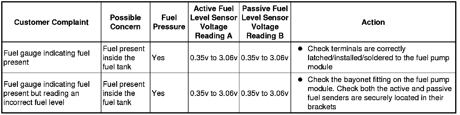 1 Using the manufacturer approved diagnostic system monitor, "active fuel level sensor(A)" and "passive fuel level sensor(B)" data logger signals located within the body control module subsection.