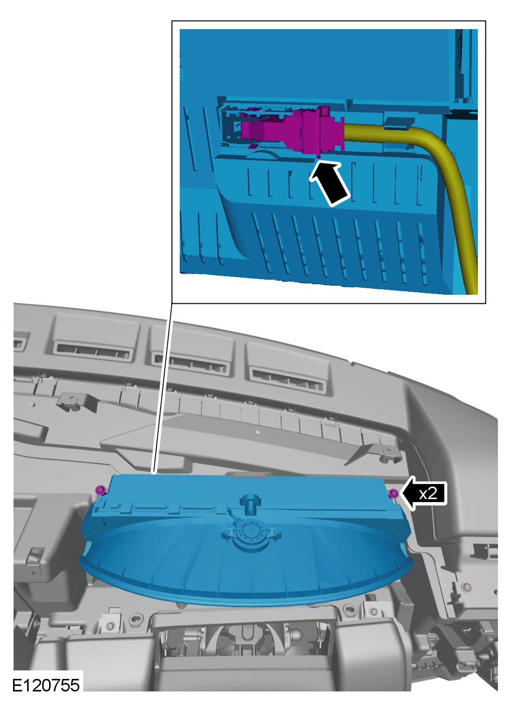 When a new instrument cluster is to be installed, the Land Rover approved diagnostic system must be connected to the vehicle and the instrument cluster renewal procedure followed. This will allow vehicle coding data and current service interval data to be correctly installed to the new instrument cluster.
