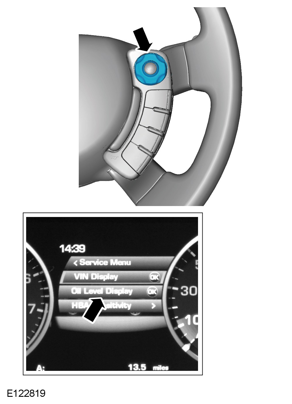 Only after having started and run the engine for 10 minutes (as indicated in Step 6), switch off the engine, then stabilizing for 10 minutes, take a reading from the oil level display and, if necessary top up with engine oil.