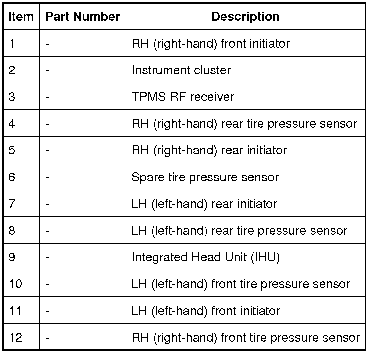 Tire Pressure Monitoring System - Component Location