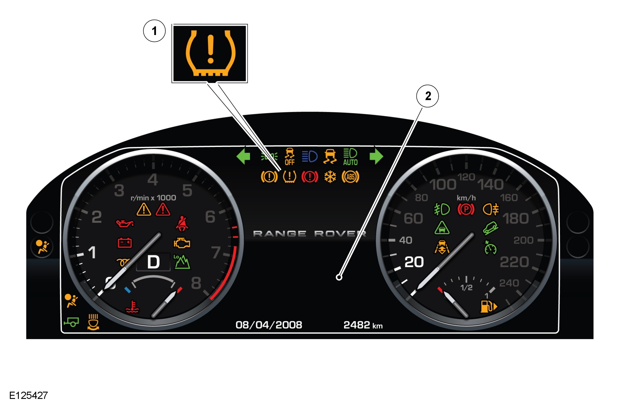 The warning indications to the driver are common on all vehicles fitted with TPMS. Warnings are conveyed by an amber LED (light emitting diode) warning indicator and a text message displayed in the message center.