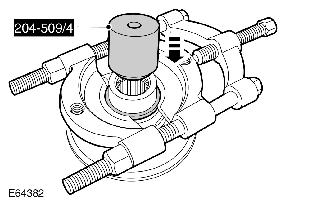 9 Using a bearing separator and the special tool, remove the rear wheel bearing inner track.