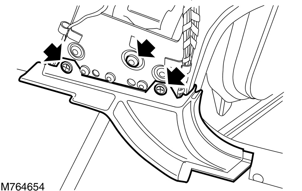 4 Remove the front scuff plate trim panel. For additional information, refer to Front Scuff Plate Trim Panel Service and Repair