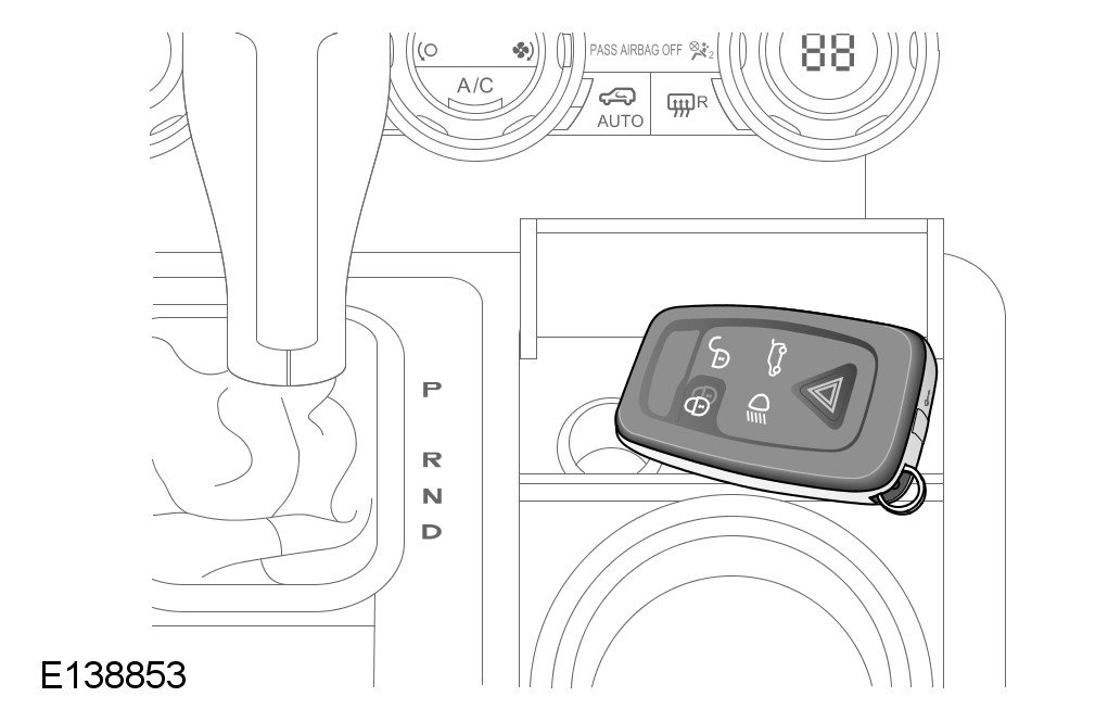 On pressing the start button, smart key not found. When this warning is displayed the smart key should be brought into close proximity with the immobilize antenna unit. For the location of the immobilize antenna unit, see illustration. Hold the key in the location and press the start button again. If this process fails the first time, try repositioning the key around the immobilize antenna unit location, repeat the sequence again