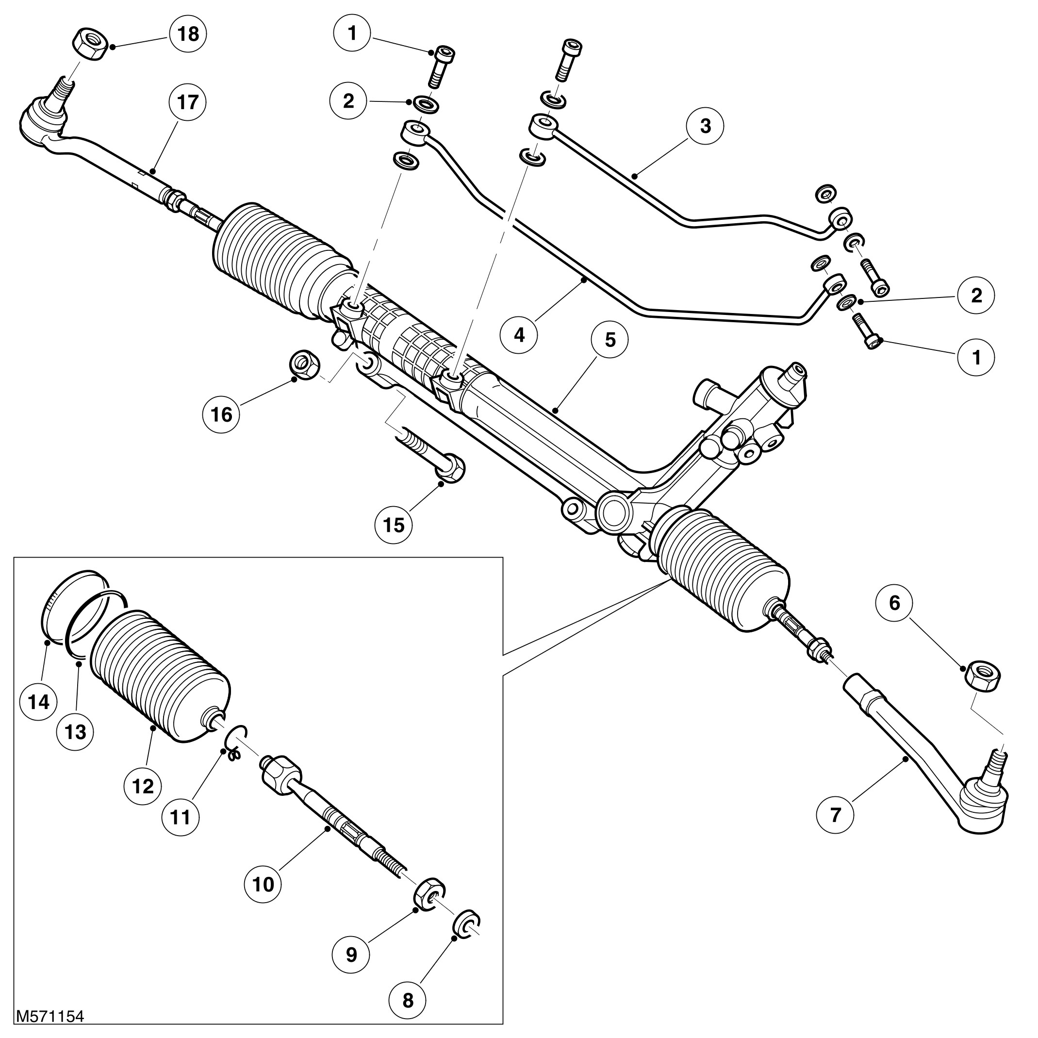 Each end of the rack has a threaded hole which provides for the fitment of an inner tie rod joint. The external ends of the rack are sealed with gaiters which prevent the ingress of dirt and moisture. The inner tie rod joints have a long outer threaded shank which screws into the outer tie rod. The steering toe can be adjusted using the threaded end of the inner tie rod. When the correct toe is achieved, a locknut on the inner tie rod is tightened to prevent further inadvertent movement.