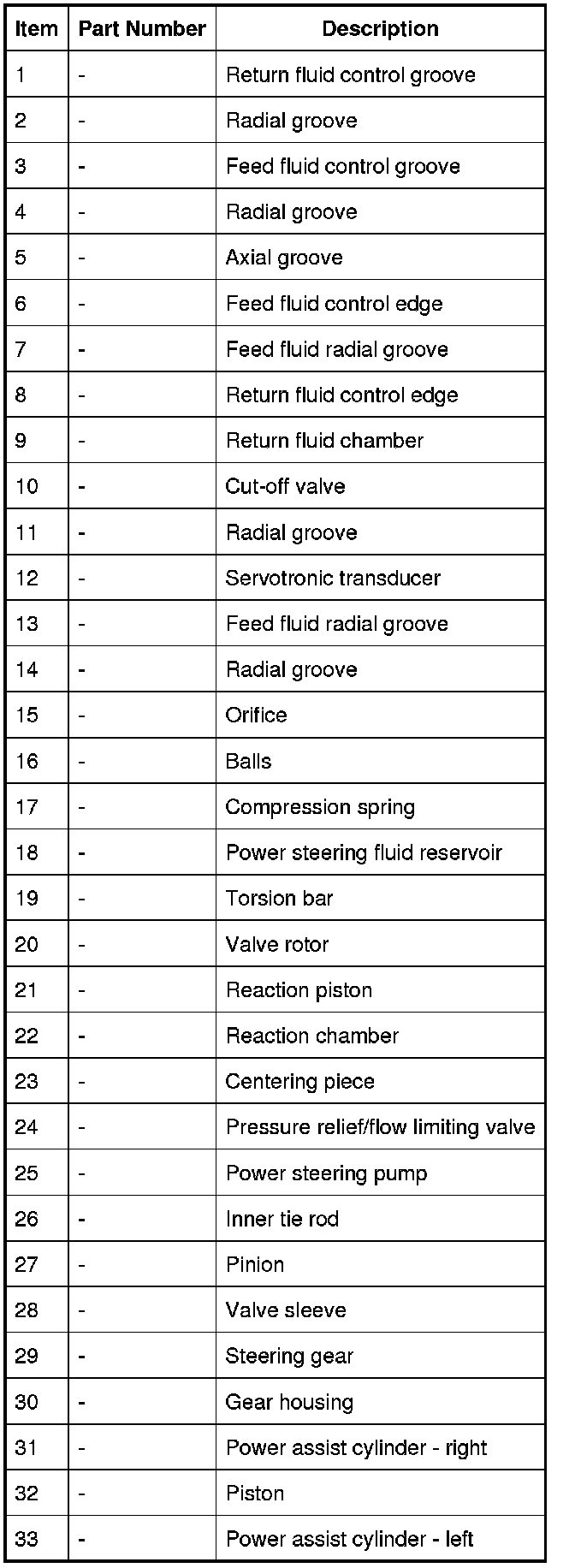 As the vehicle is driven and the road speed increases, the CJB (central junction box) microprocessor analyses the road speed signals from the ABS (anti-lock brake system) module and reduces the amount of control current supplied to the Servotronic valve. The Servotronic valve reacts to the control current and opens the valve by an amount appropriate to the road speed. This allows a controlled fluid supply from the feed fluid radial groove to the reaction chamber. The orifice prevents the loss of large amounts of fluid to the return fluid chamber. The higher fluid pressure acting on the reaction piston causes compression of the balls which are located between the reaction piston and the centering piece which in turn is securely connected to the valve sleeve. When driving in a straight line, this has a positive effect on the exact centralizing of the steering valve. When the steering valve