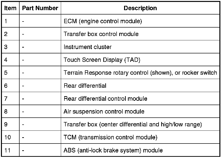 The following vehicle subsystem control modules are used for the Terrain Response system: