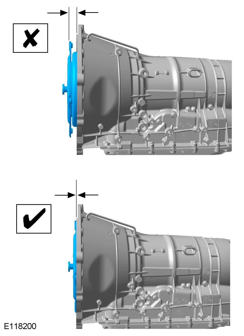 CAUTION: Make sure the torque converter is fully located into the oil pump drive.