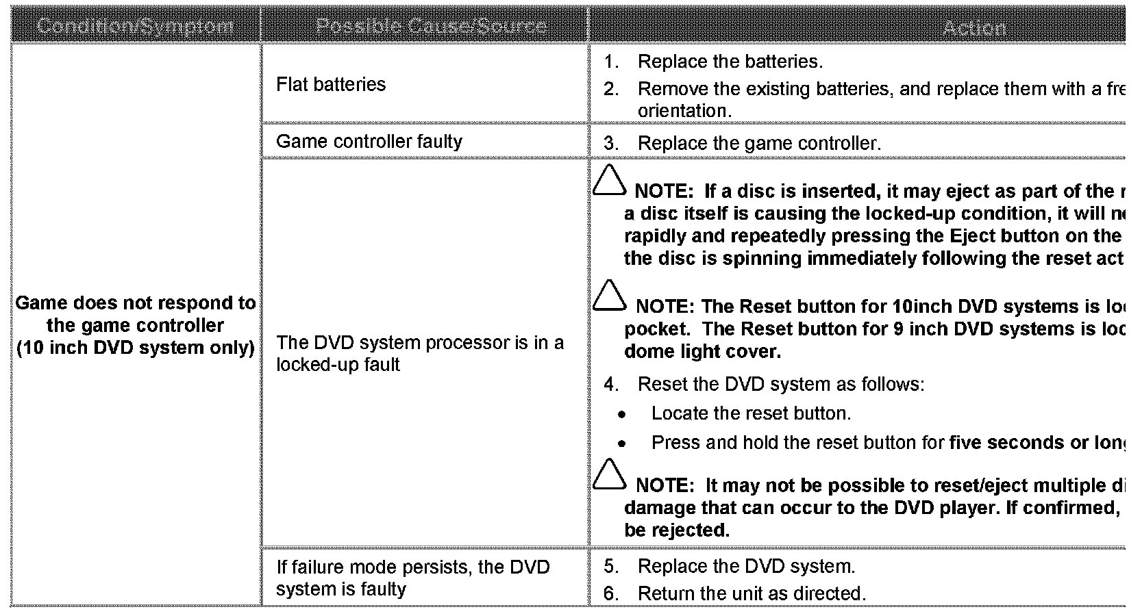 Game display is inoperative (10 inch DVD system only)