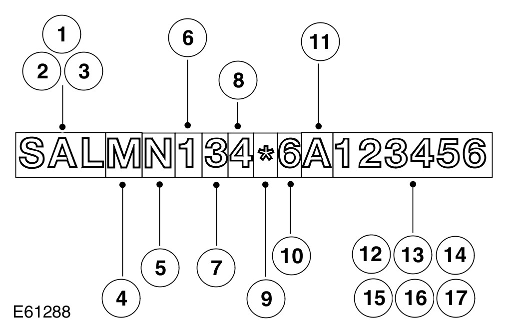 - 3. UK, Europe and ROW - Not NAS/Canada -On the VIN plate attached to the LH inner wing, forward of the suspension turret.