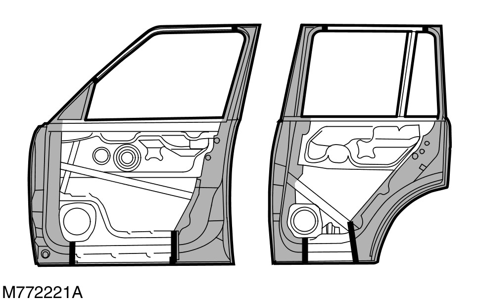 The doors are made from aluminum. The door inner assemblies are made of pressed panels and die-cast panels, which are joined together using a combination of riveting and bonding.