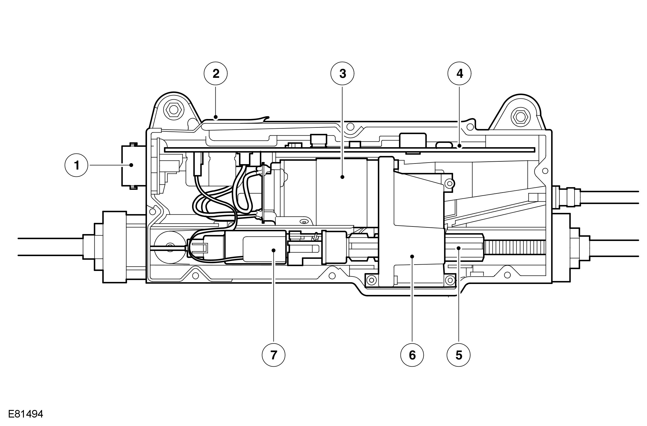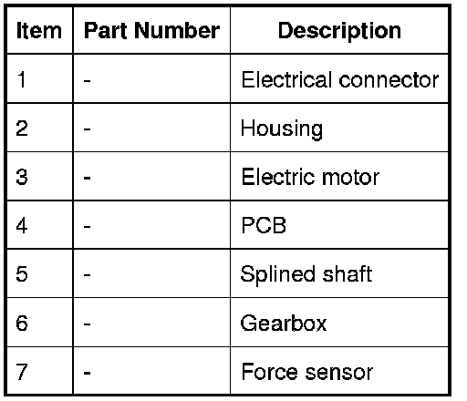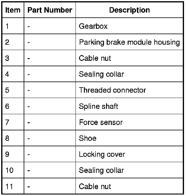 The parking brake is mechanically released by disconnecting the force sensor from the spline shaft in the parking brake module. During normal operation, the force sensor and the spline shaft are locked together by a lever operated pawl on the end of the spline shaft, which engages with a spigot on the force sensor.