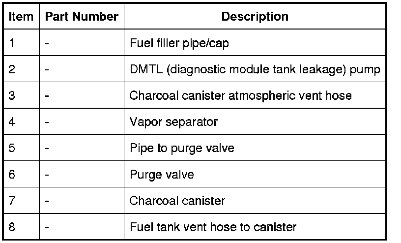 Fuel vapor is generated by the fuel in the tank and the amount of vapor produced increases as the fuel heats up. Fuel vapor can flow freely to the charcoal canister via the tank venting system. The venting system consists of roll over valves and a liquid vapor separator mounted on the top of the tank and connected via a breather hose. The breather hose allows the hydrocarbon fuel vapor to flow to the charcoal canister.