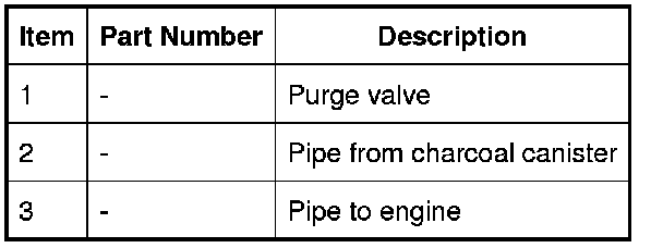 The purge valve is installed on a bracket attached to the LH (left-hand) cylinder head cover. The pipe to the engine from the purge valve is connected to the intake manifold (naturally aspirated vehicles), or SC (supercharger) front cover (SC (supercharger) vehicles), with a quick release connector. The pipe to the charcoal canister from the purge valve is installed between the LH (left-hand) cylinder head cover and ignition coil cover, then goes through the left front suspension housing and along the underside of the vehicle, parallel with the fuel feed line. Just forward of the left rear wheel arch the pipe goes across the top of the fuel tank to the charcoal canister.