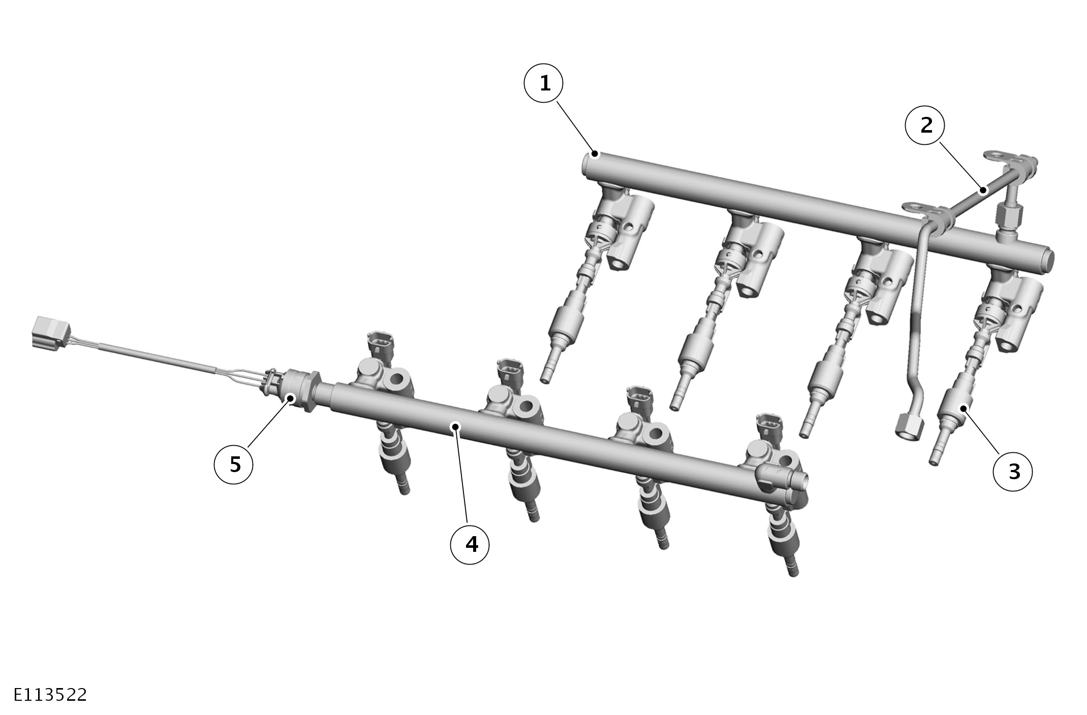 - Two fuel rails and a crossover tube.