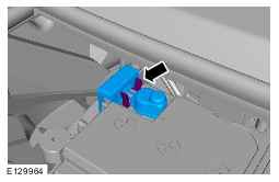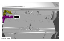 CAUTION: Make sure that the battery monitoring system (BMS) module wiring harness does not get caught beneath the battery securing clamp.