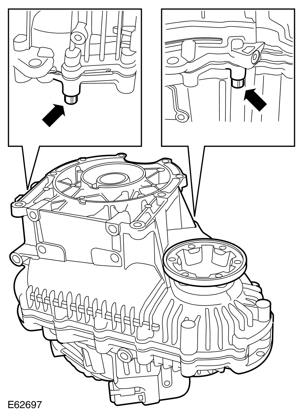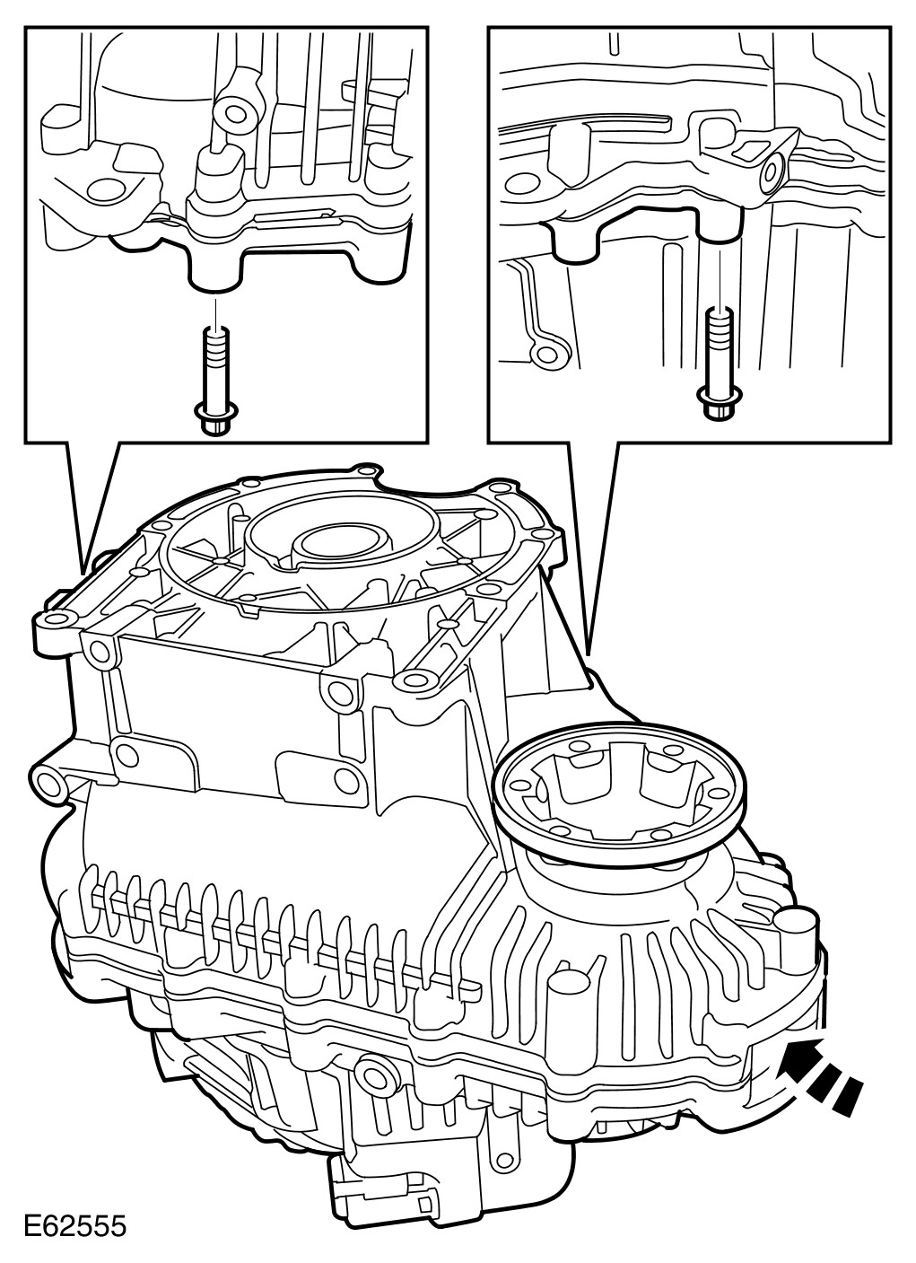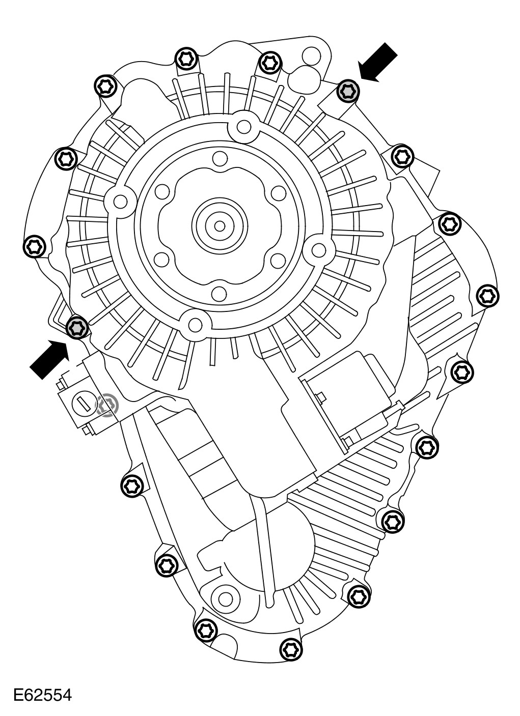 - Evenly tighten the 2 Torx bolts shown to 35 Nm (26 lb.ft).