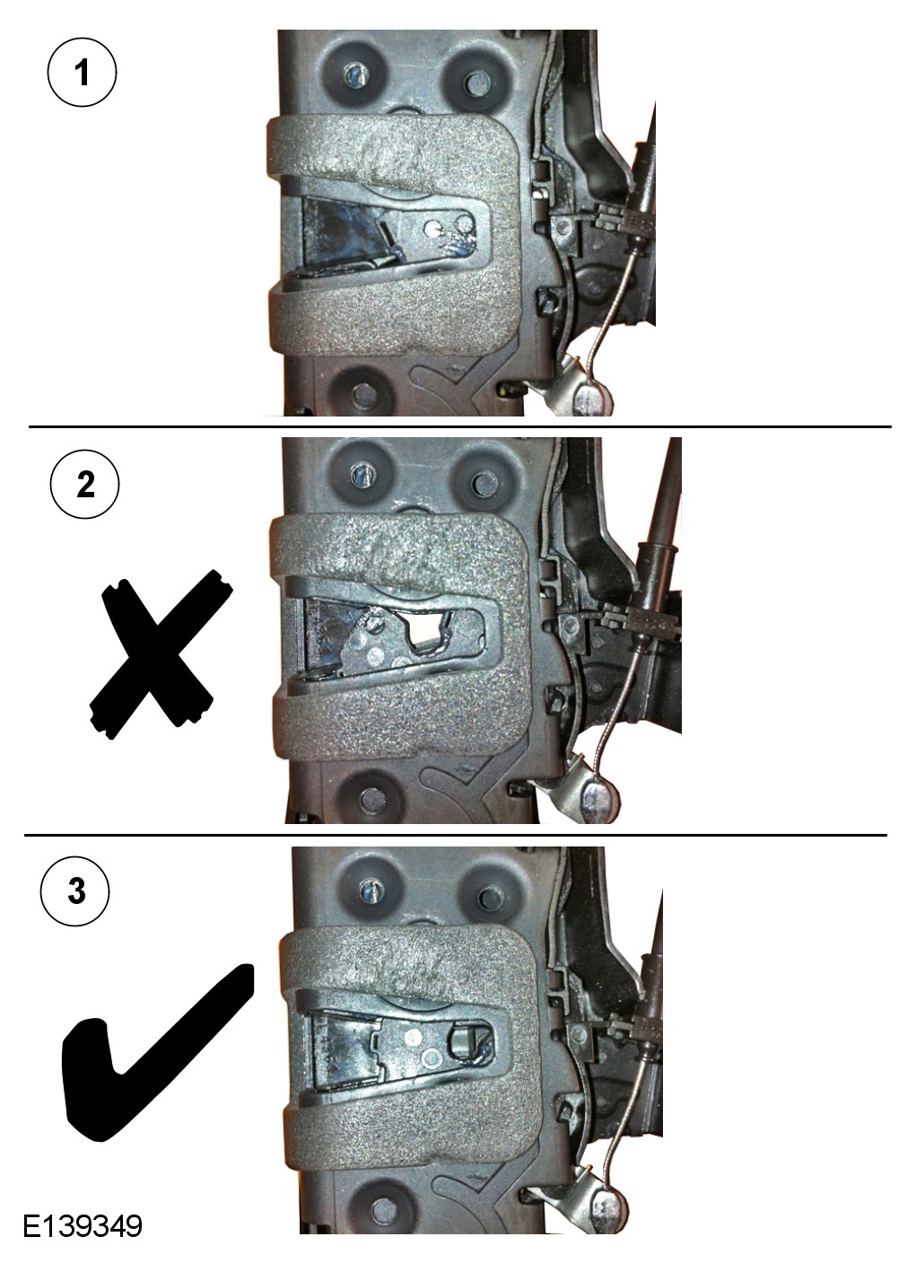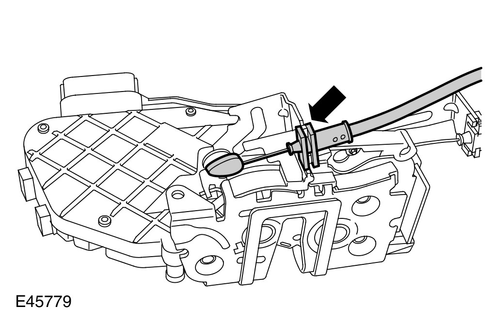 3 Confirm the interior door release cable is correctly installed to the interior door handle