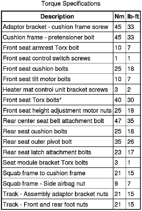 Seats: Specifications