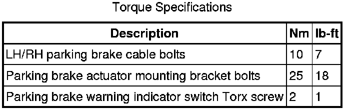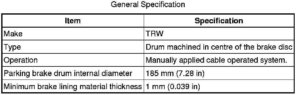 Parking Brake System: Specifications