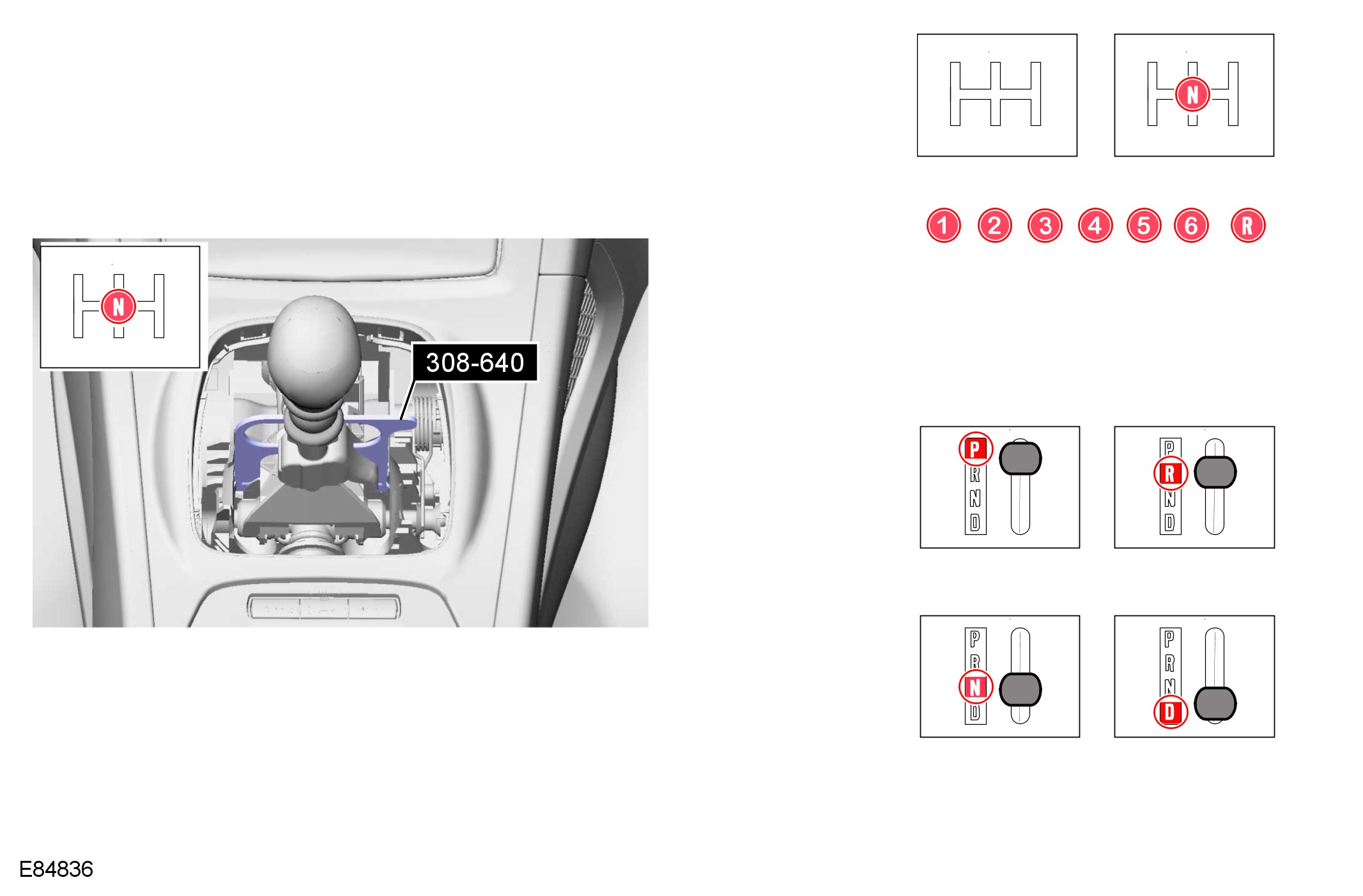 Gearshift lever or selector lever position symbols are used to show which gearshift lever or selector lever position is to be set.