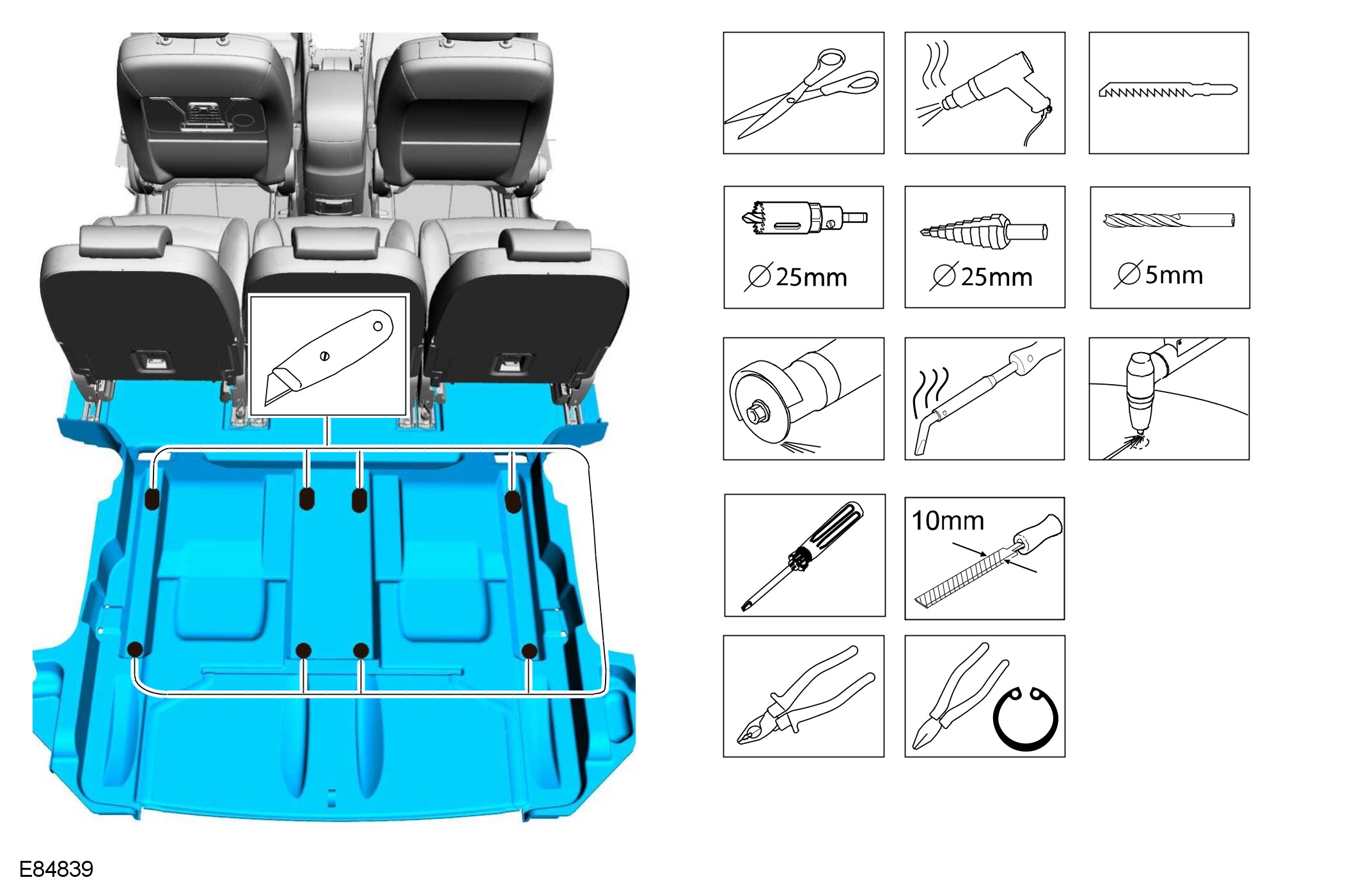 Special tools will be shown with the tool number in the illustration. The special tool number(s), general equipment, material(s) and torque figure(s) used for the procedure step will be shown in the text column.