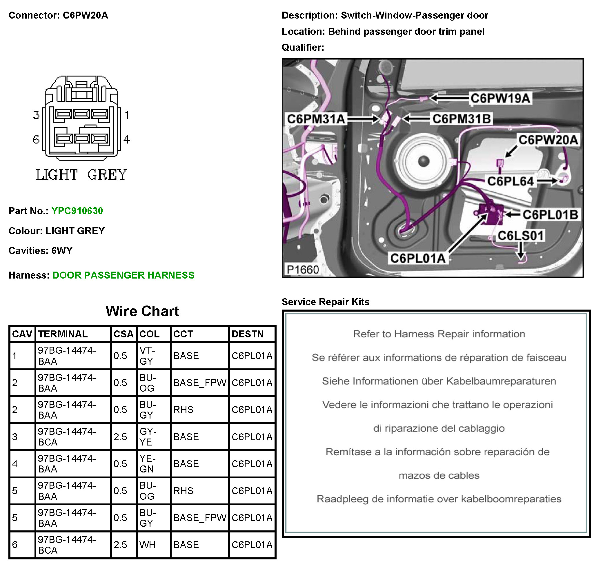 C6PW20A Switch-Window-Passenger Door