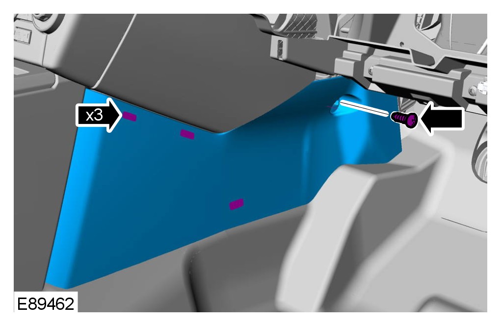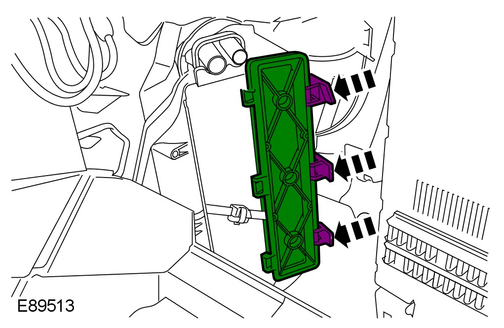 12 Connect the 5 electrical connectors to the CJB and secure the front carpet.
