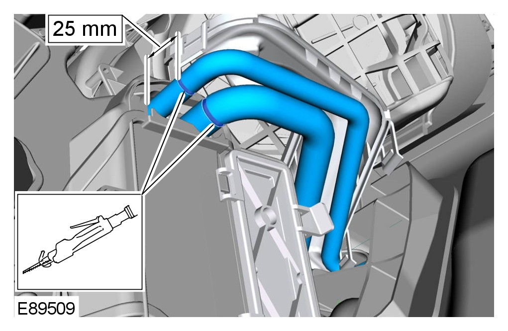 10 Guide the cut evaporator pipes through the bulkhead so that approximately 20mm is visible in the engine compartment.