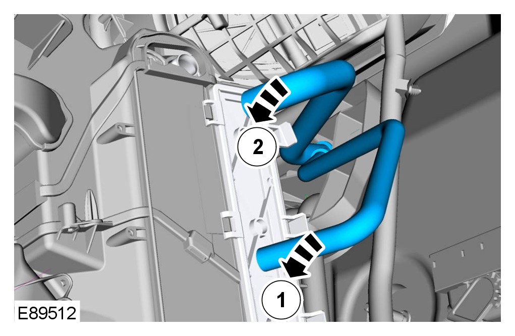 6 Guide the service replacement evaporator pipes through the bulkhead so that approximately 20mm is visible in the engine compartment.