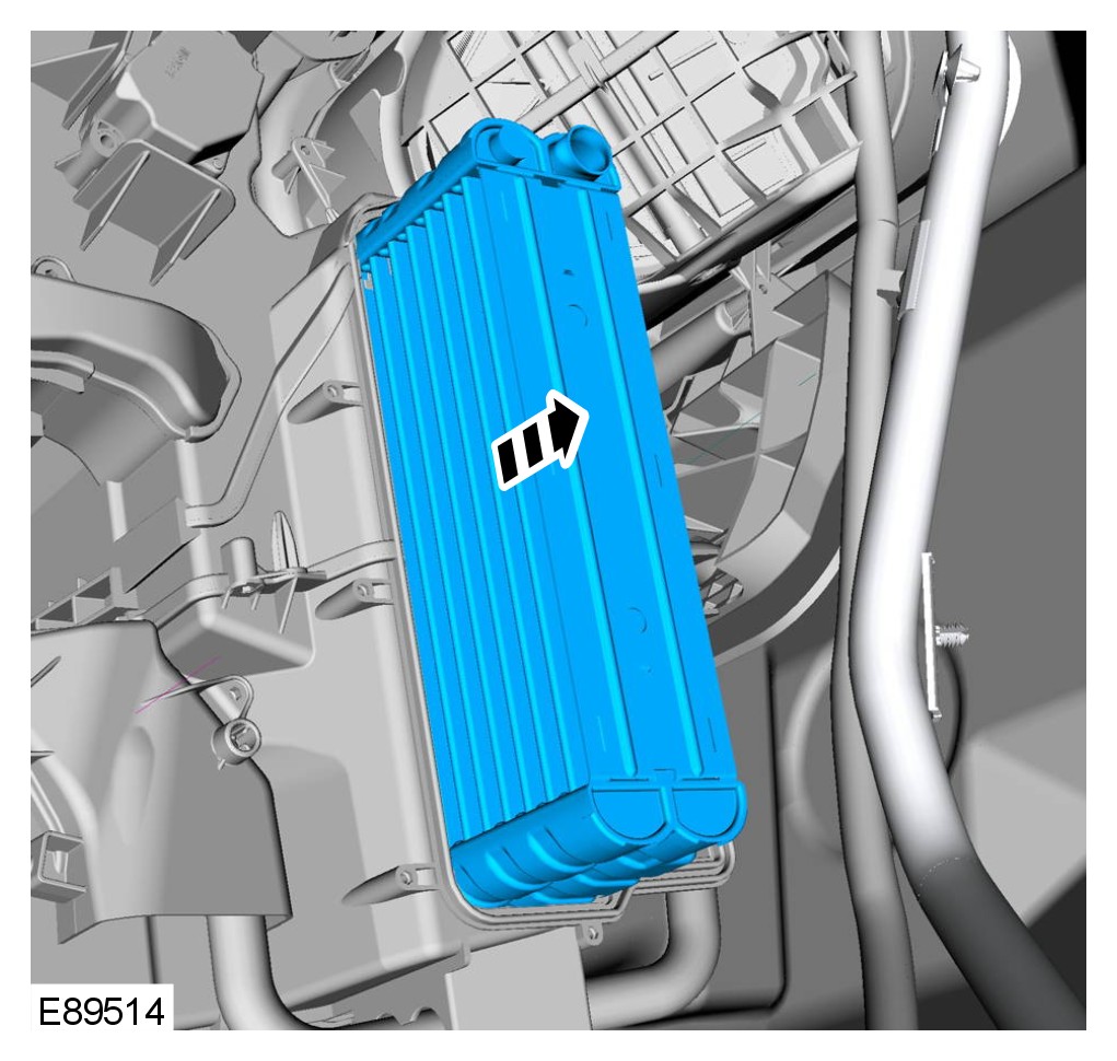 The removal of this component involves cutting an aperture in the evaporator housing wall and cutting through the high and low pressure A/C lines. A service repair kit is supplied to cover this procedure.