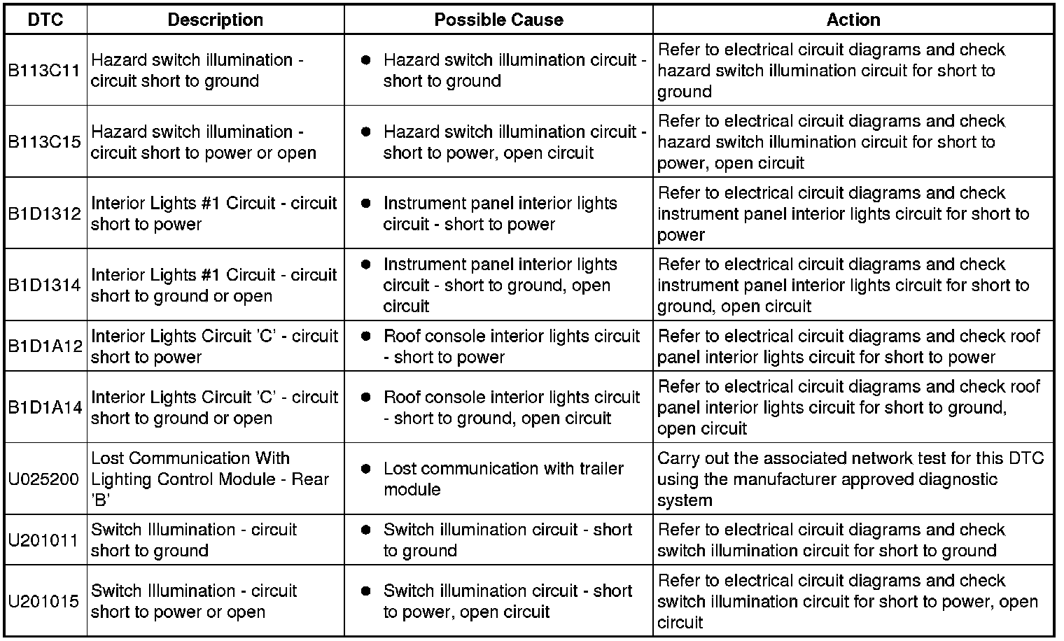 Generic scan tools may not read the codes listed, or may read only five digit codes. Match the five digits from the scan tool to the first five digits of the seven digit code listed to identify the fault (the last two digits give extra information read by the manufacturer-approved diagnostic system).