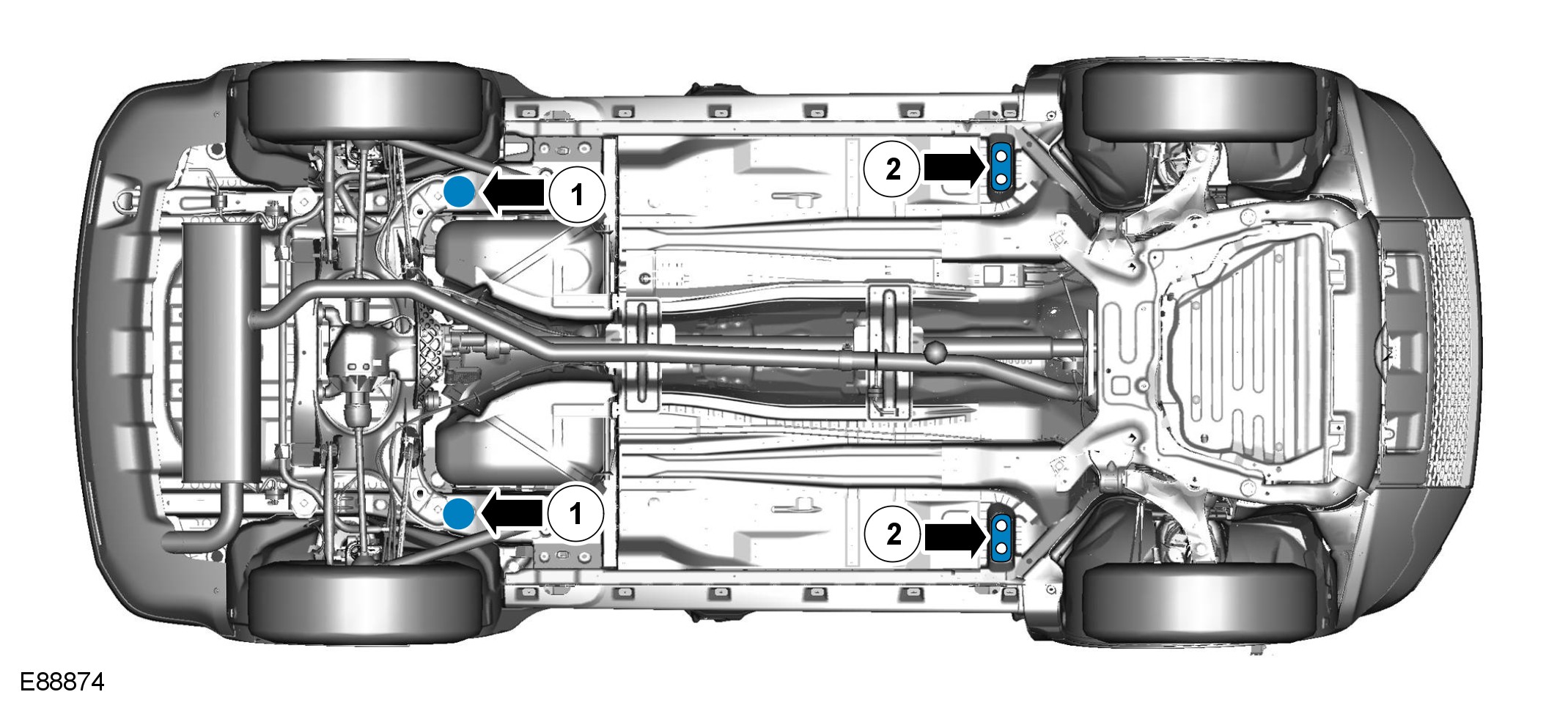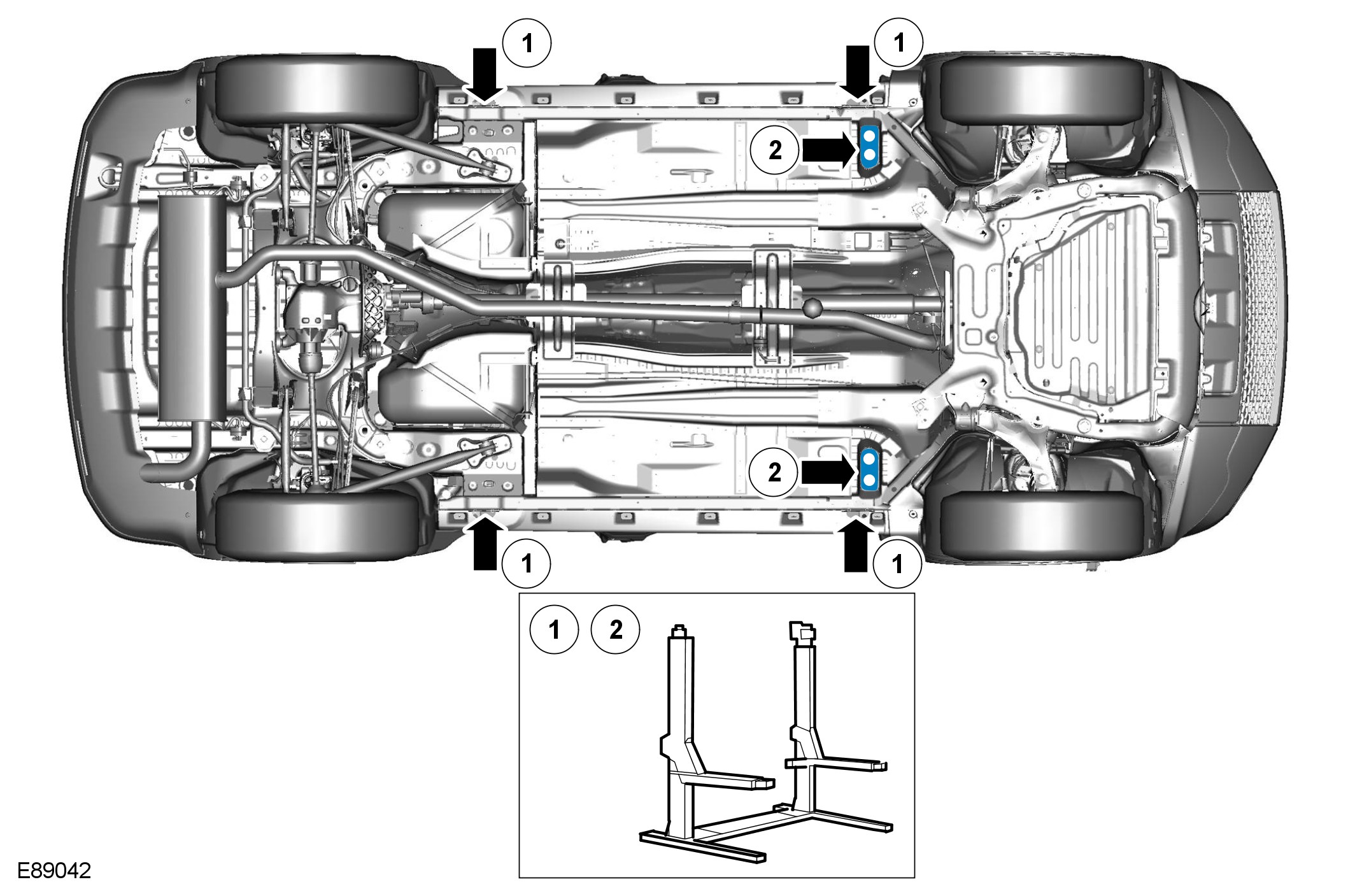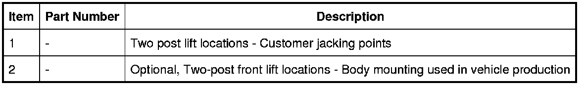 1. Position the vehicle with the centre of the lift pillars aligned approximately with the front of the driver/passenger seat cushions.