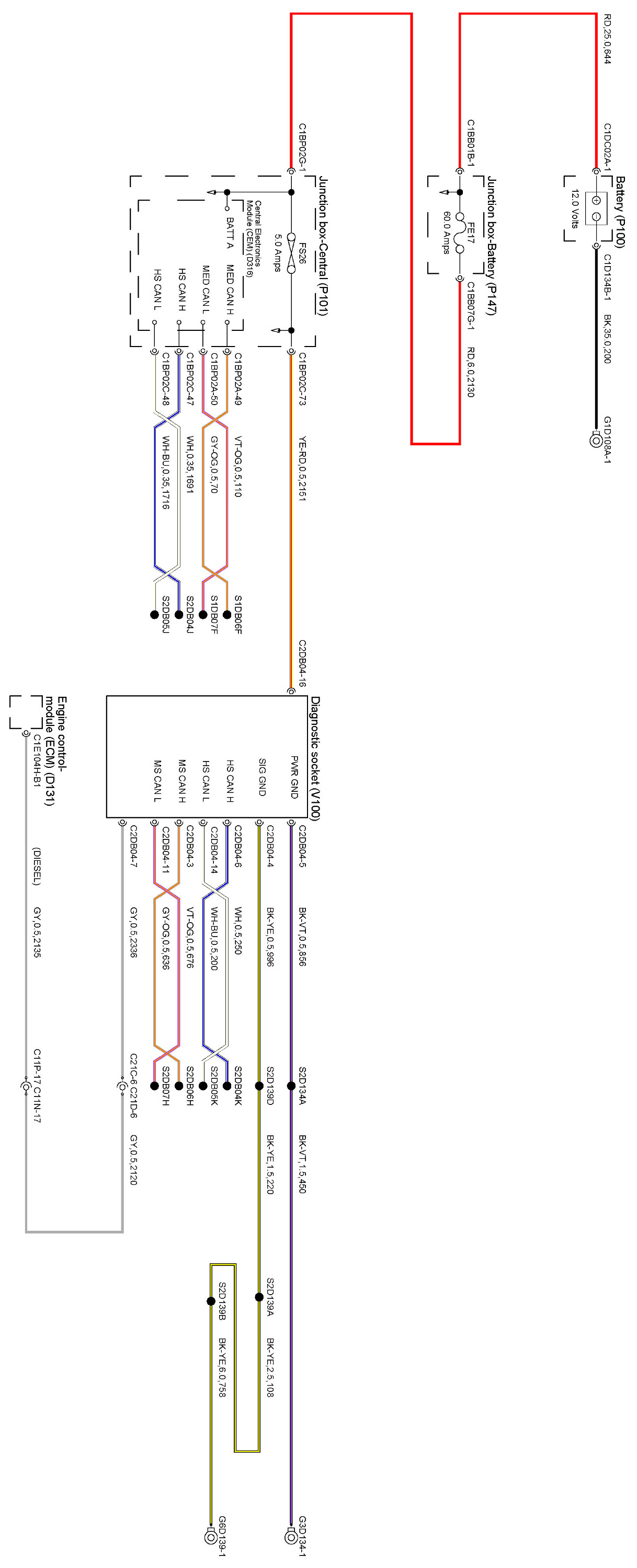 Locations: The location views for connectors and components depicted within these diagrams can be found via the connector's base number (i.e. C0570) at Vehicle/Locations/Connectors. Connector Locations