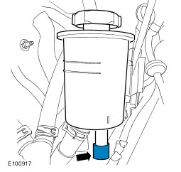 - Release the power steering fluid return hose from the power steering fluid reservoir.