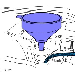Using the suitable funnel, top up the power steering system with the specified fluid. Make sure the fluid level is maintained at two thirds full in the funnel.