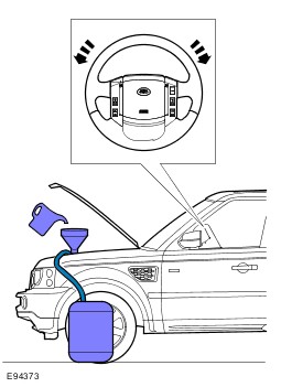 CAUTION: Make sure the engine is switched off as soon as the full 4 liters of power steering fluid has entered the power steering fluid reservoir.