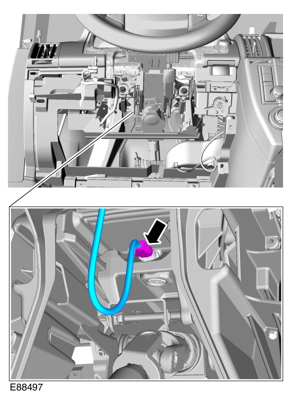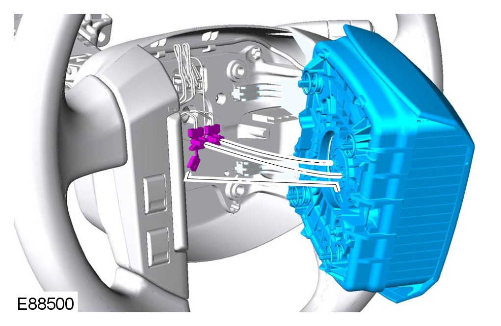 6 If installed, connect the SRS ride-down electrical connector concealed at the rear of the steering column.