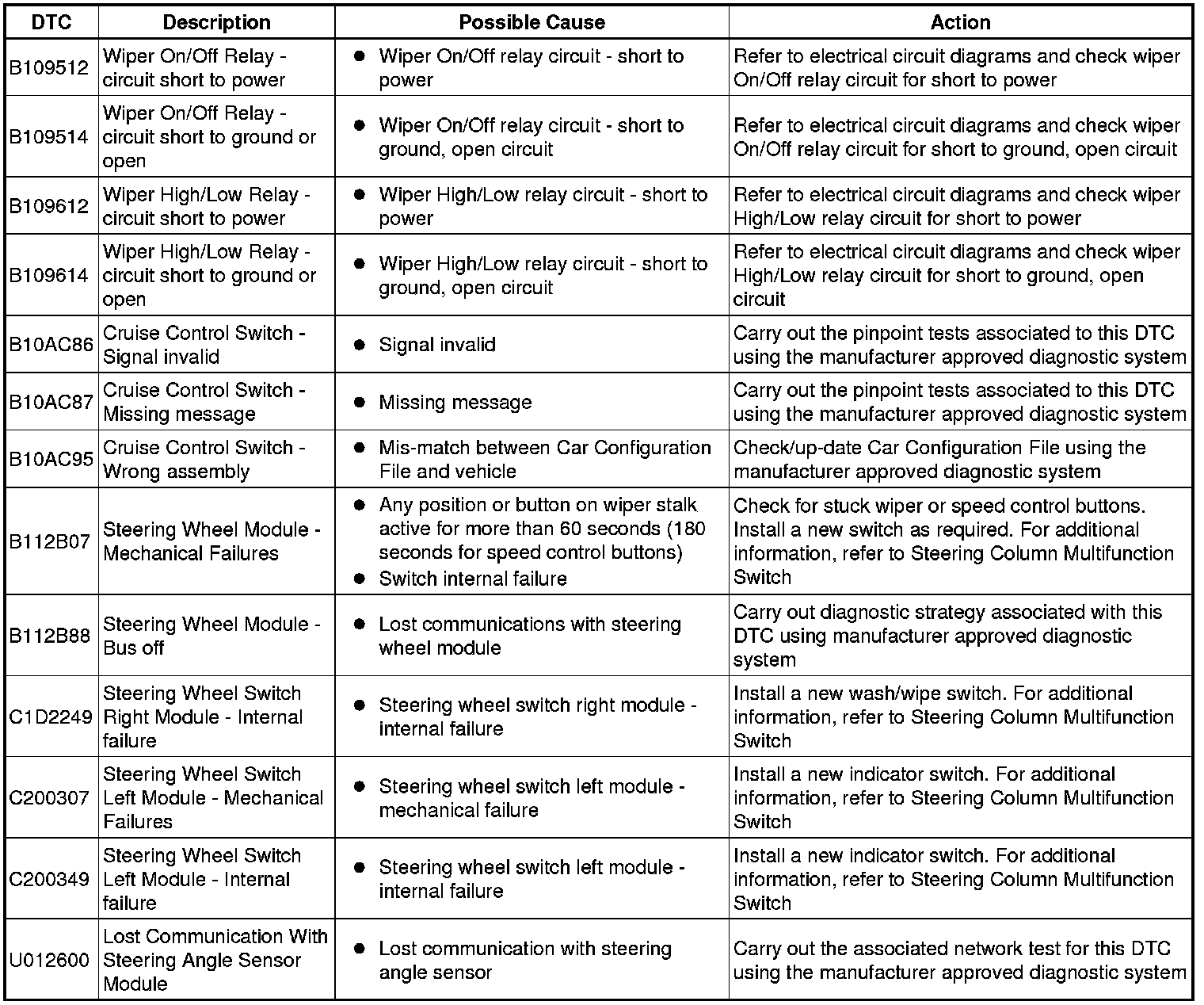 Generic scan tools may not read the codes listed, or may read only five digit codes. Match the five digits from the scan tool to the first five digits of the seven digit code listed to identify the fault (the last two digits give extra information read by the manufacturer-approved diagnostic system).