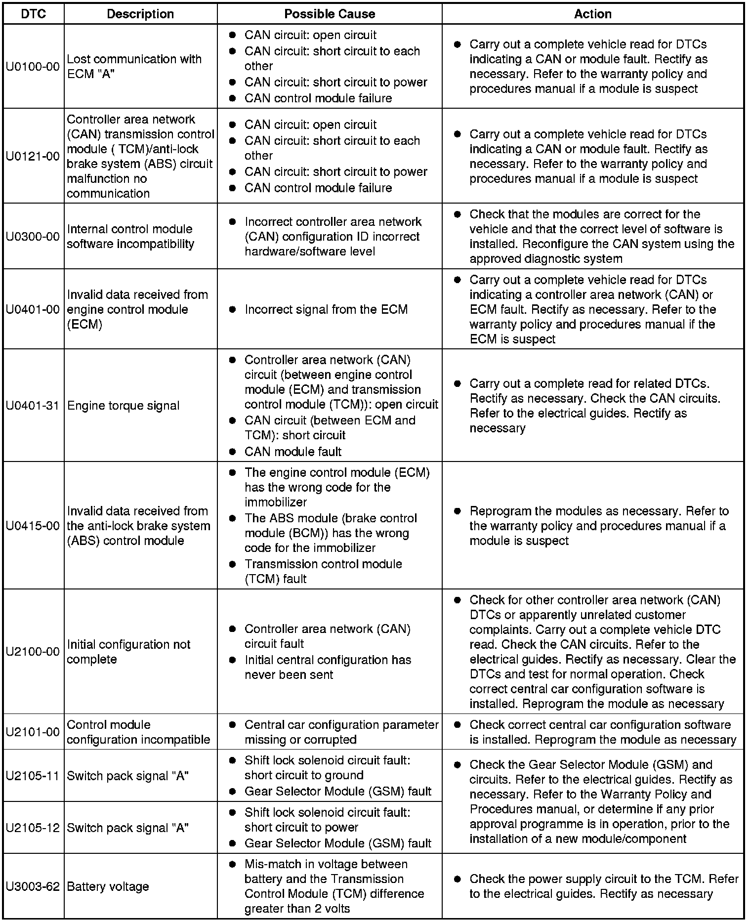 Generic scan tools may not read the codes listed, or may read only 5-digit codes. Match the 5 digits from the scan tool to the first 5 digits of the 7-digit code listed to identify the fault (the last 2 digits give extra information read by the manufacturer-approved diagnostic system).