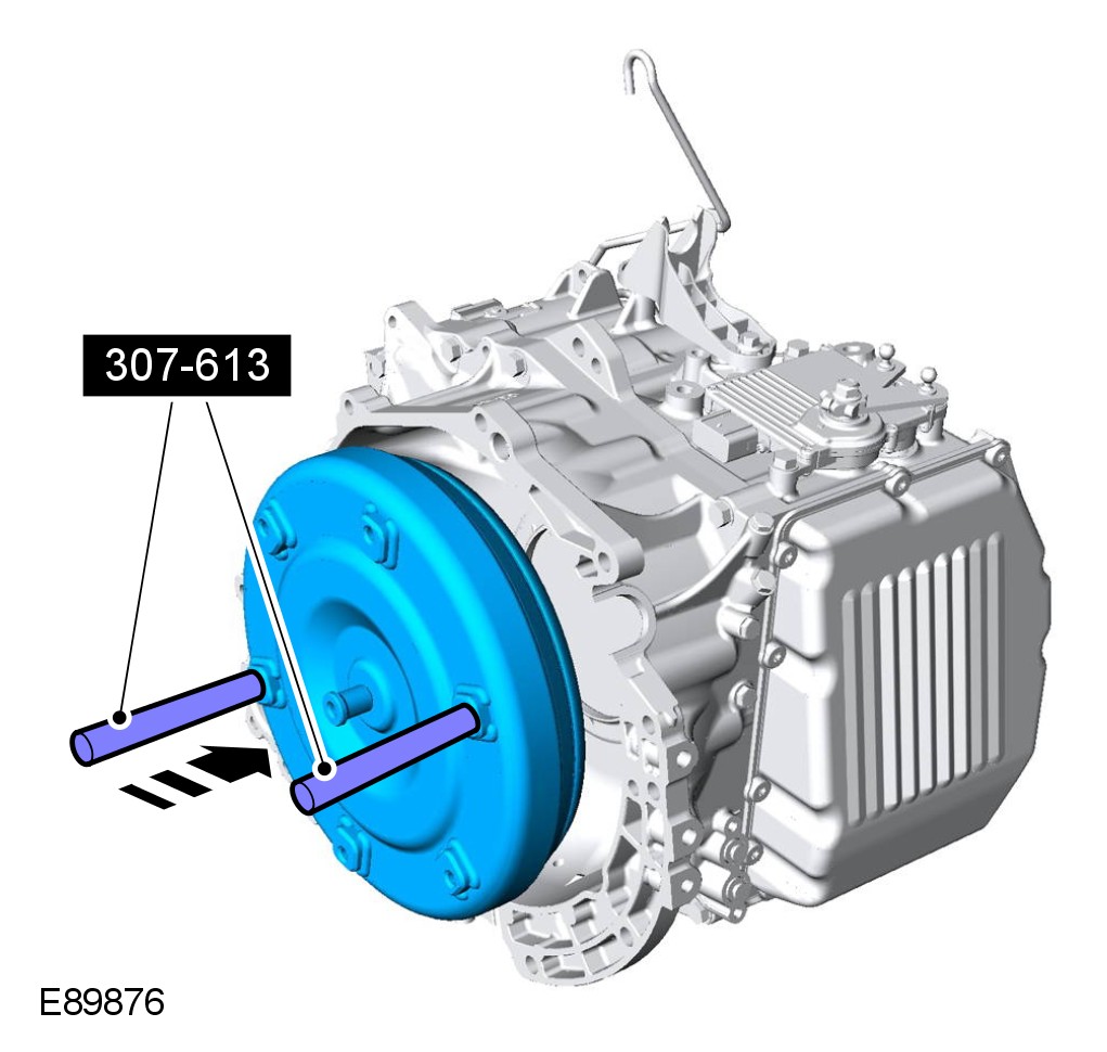 CAUTION: Align the torque converter and oil pump drive before installing the torque converter.