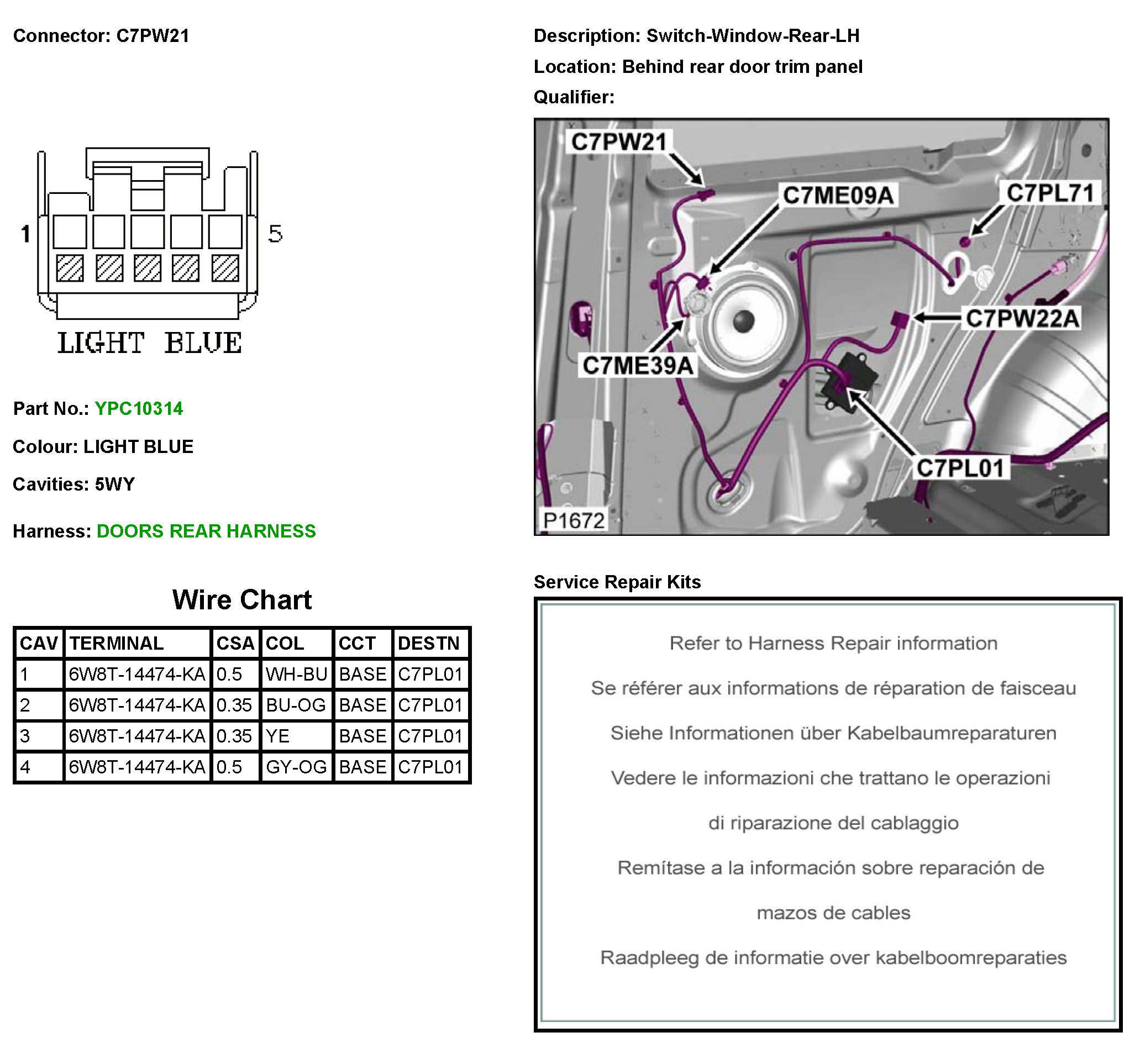 C7PW21 Switch-Window-Rear-LH