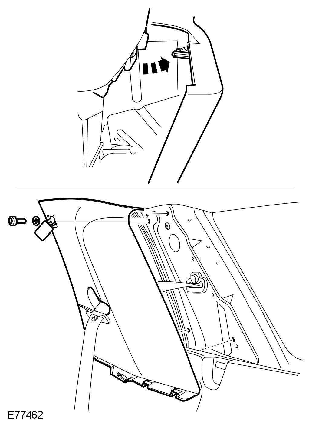 1 Remove the rear quarter trim panel.