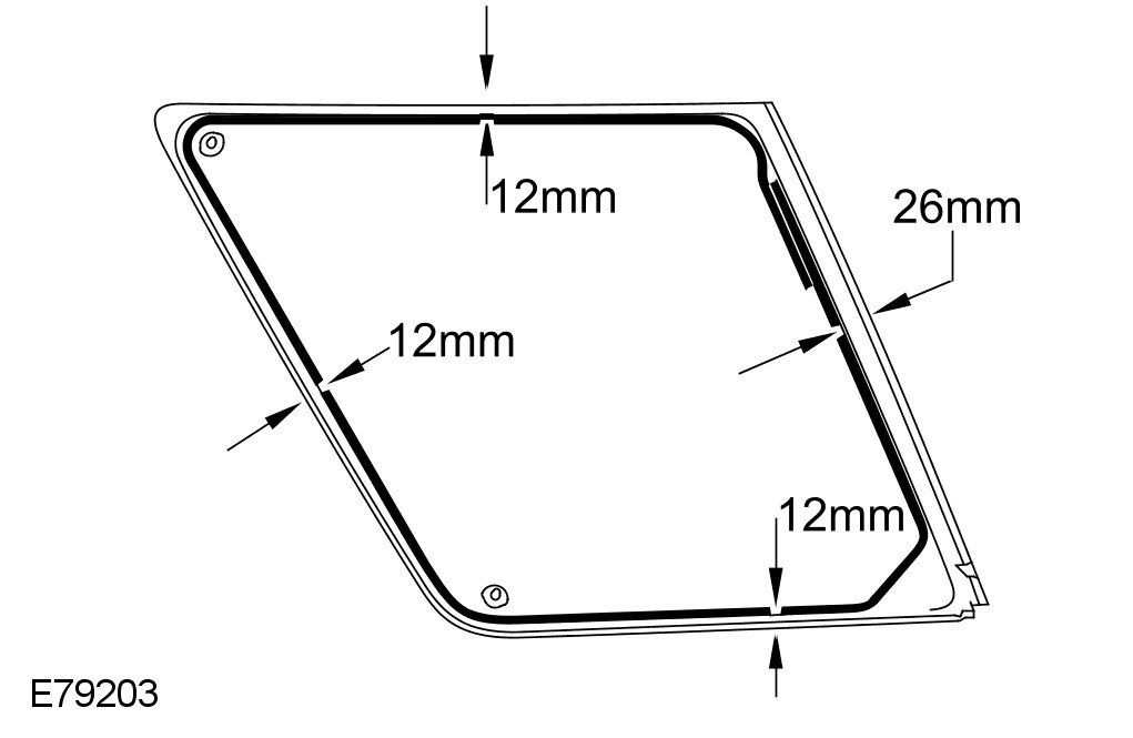 3 Apply glass primer to the sealant face on the rear quarter window glass and allow to cure.