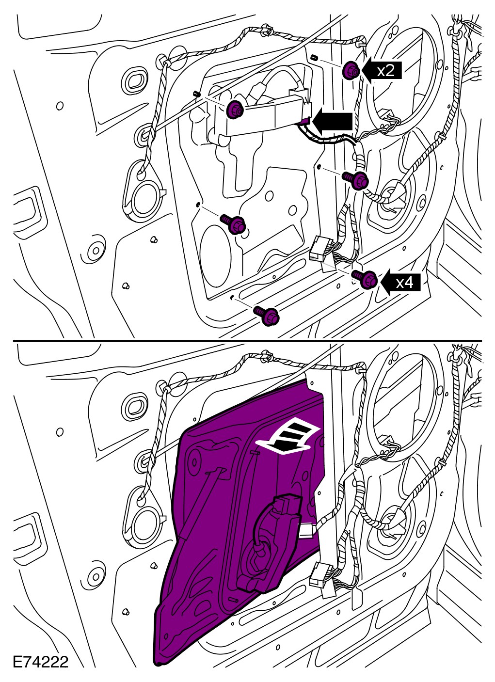 7 Remove the window motor and regulator assembly.