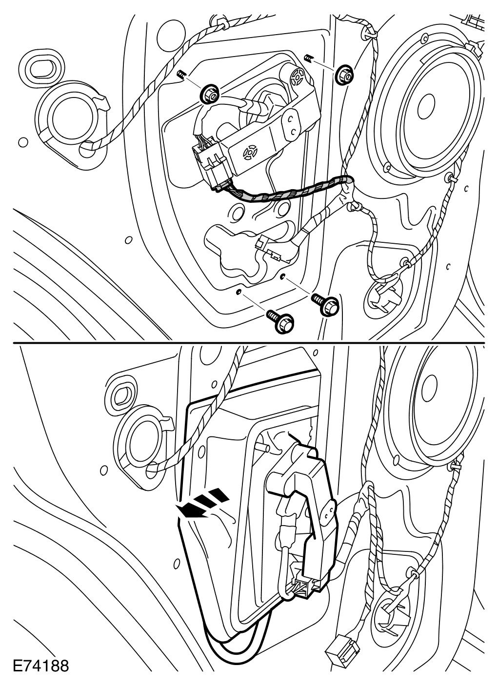 1 Install the window motor and regulator assembly. Tighten the nuts and the bolts.