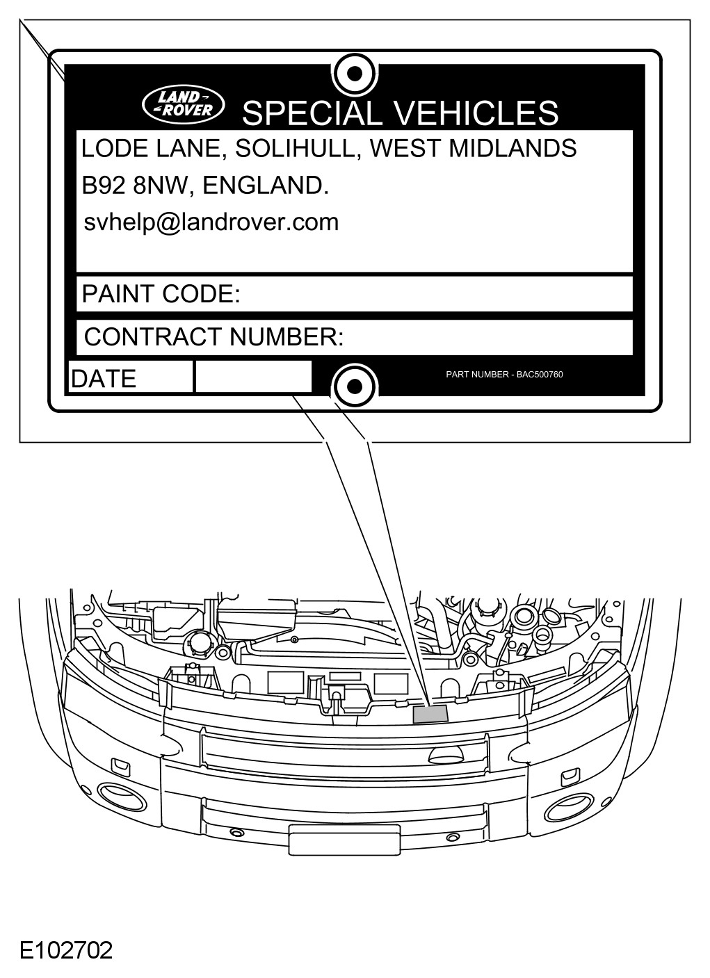 The commission plate is mounted on the locking platform of the engine compartment lid.