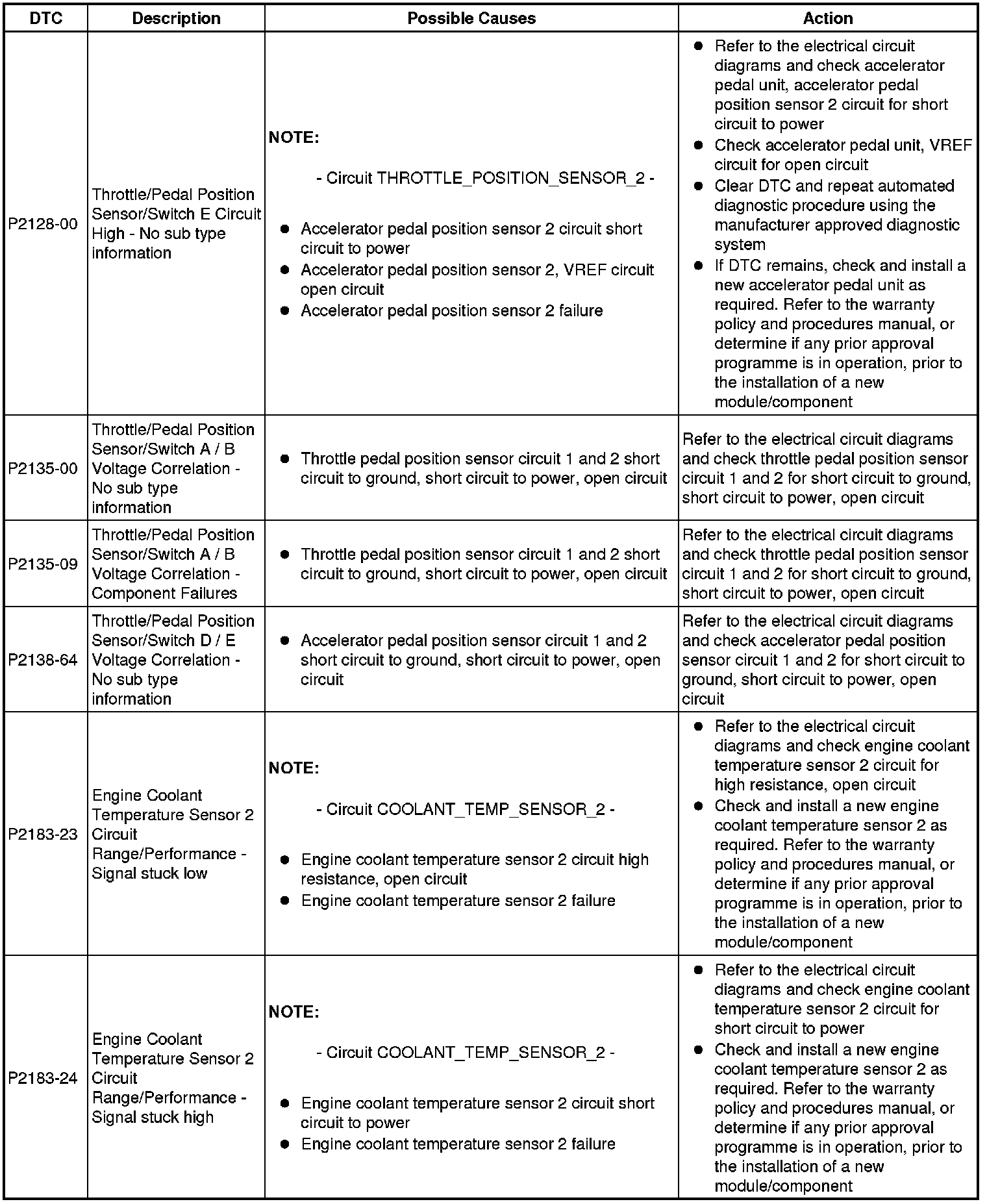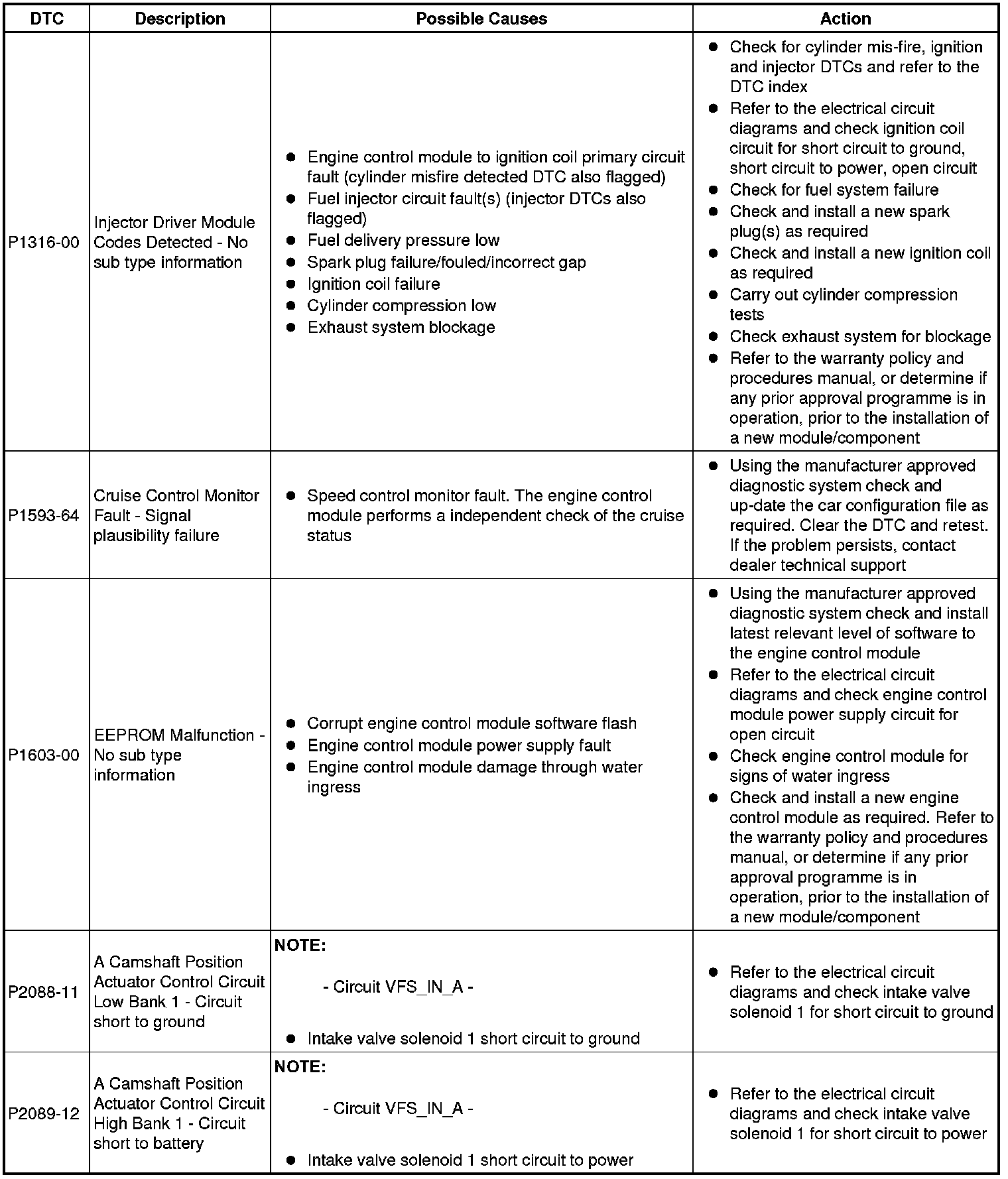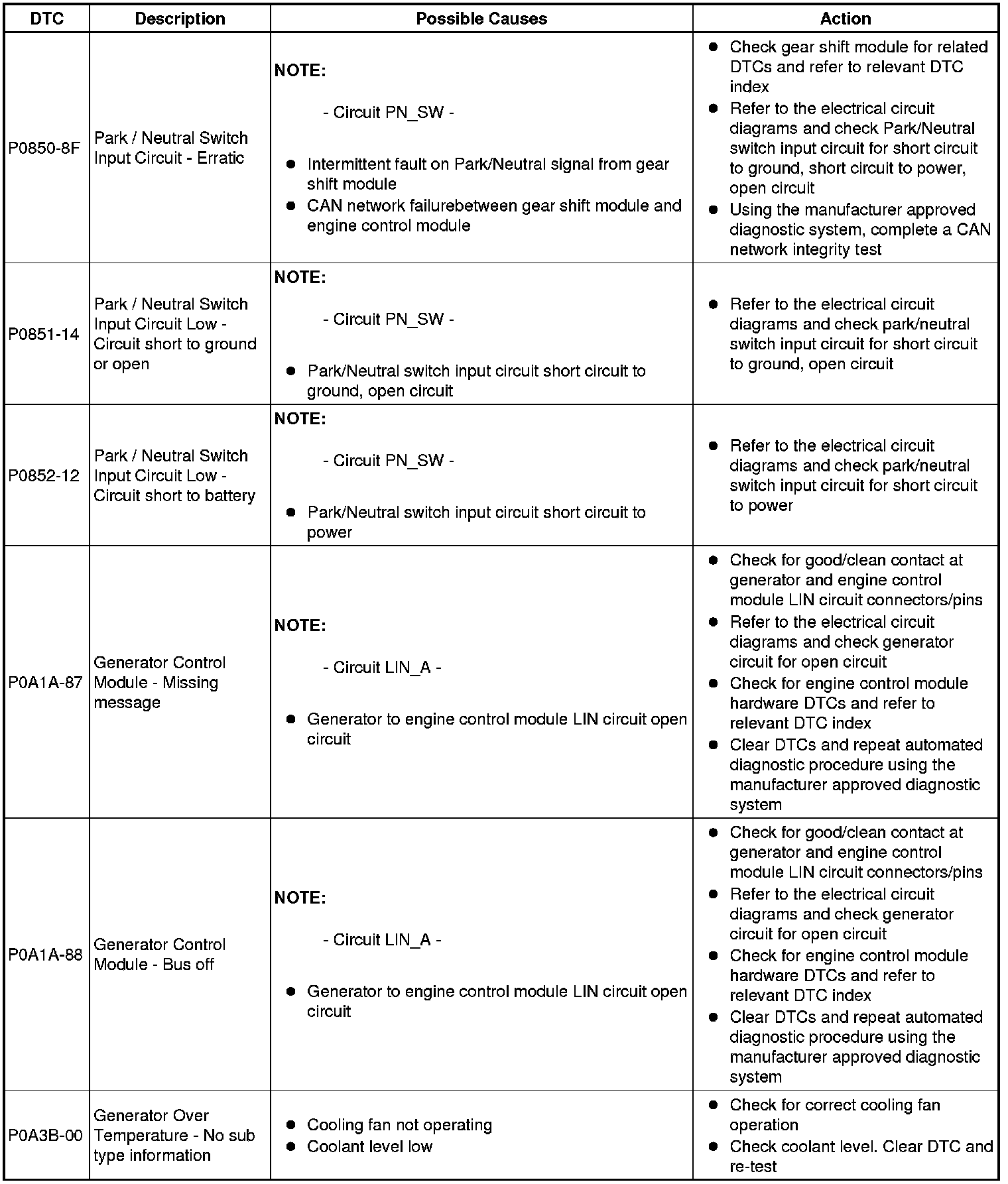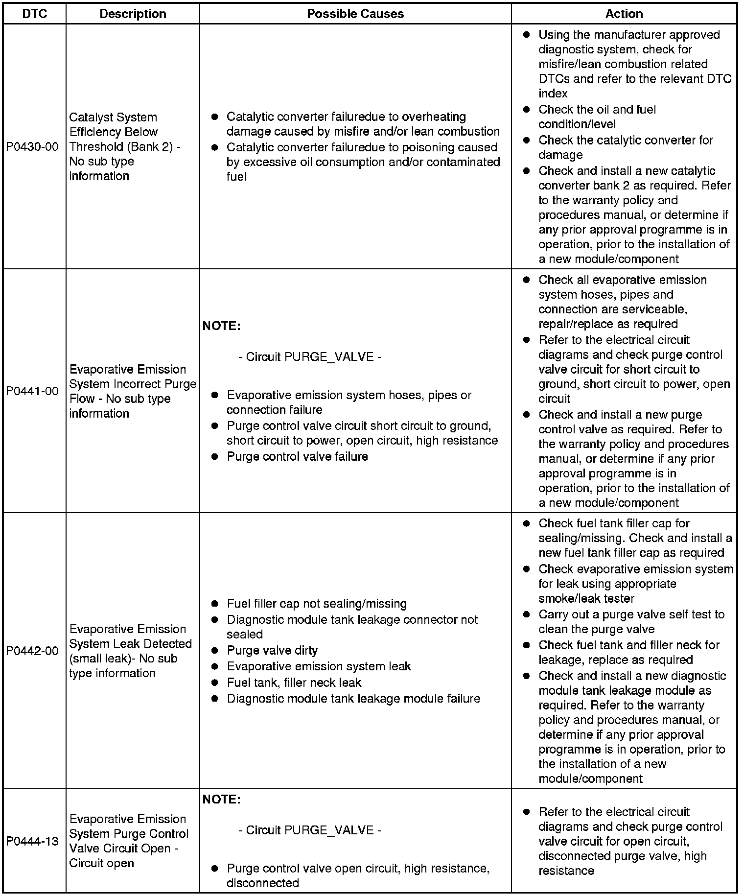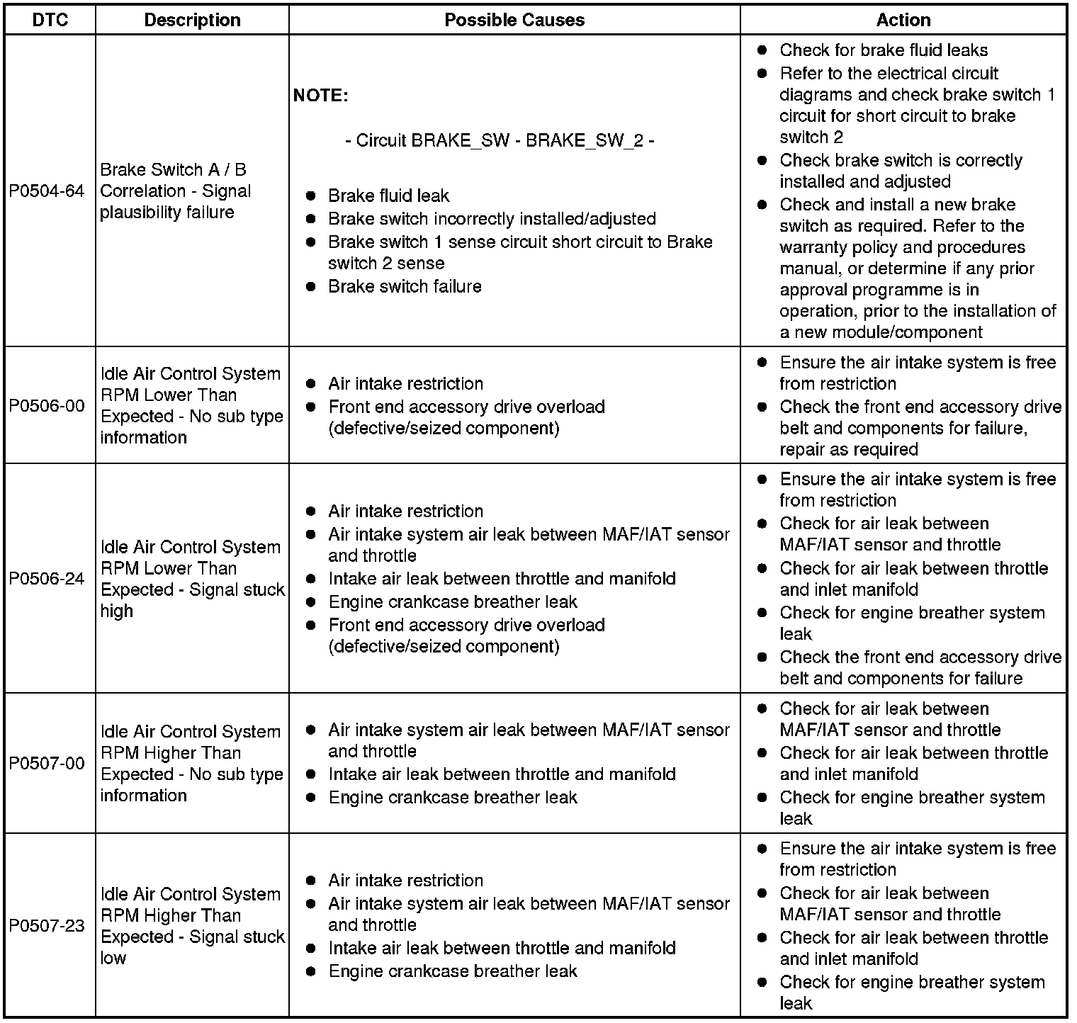 Diagnostic Trouble Code (DTC) Index